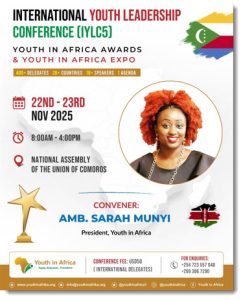 Convened by Ambassador Sarah Munyi, President of Youth in Africa, the conference emphasizes themes of leadership training and entrepreneurship, directly resonating with our organization’s priorities. The program runs daily from 8:00 AM to 4:00 PM, offering a platform for meaningful dialogue, networking, and recognition of outstanding youth contributions through the awards segment. For international delegates, a conference fee of USD 50 applies, with further details available via the organization’s website at www.youthinafrica.org or through their contact lines (+254 723 557 048 or +269 386 7290).
